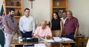 Deste encontro participaram o vice-prefeito, José Carlos Soares; o Diretor do Desenvolvimento Econômico e Turismo, Tarcísio Rodrigues; a Diretora Educação, Maria Angélica Rebello; o vereador e líder do Governo na Câmara, Denir Ferreira e os representantes do SEBRAE: Rafael Matos do Carmo – Gerente do Escritório Regional; Margareth Kovaguti – Gestora de Políticas Públicas – e Ariadini H. Zanin- Gestora SEBRAE do Município de Guaíra