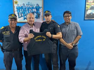 O prefeito esteve presente na sede da GCM, juntamente com o vereador José Pugliesi Neto e o comandante Reginaldo Izaias.