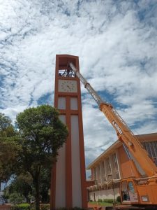 Segundo o prefeito a estrutura de mais de meio século, estava comprometida. “Depois de quase 60 anos, a prefeitura está retirando estes sinos, com o apoio da Usina Colorado, e fará a manutenção na torre e no relógio para, posteriormente retorná-los, mantendo o patrimônio preservado”, afirmou Junão, ao lado do engenheiro Paulo Brinck e do diretor de planejamento, Vamberto Ribeiro.