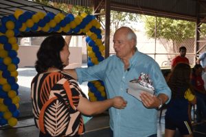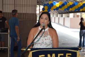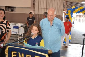A aluna Taissa da Silva Felix, em nome de toda a equipe e alunos da unidade, prestou homenagem ao prefeito, em agradecimento pela atenção que a administração tem dado para a educação municipal.