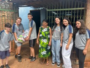 Nesta terça-feira (02), representantes da escola e estudantes do 7º ano participaram da entrega das doações no município de Guaíra. Os alimentos foram destinados a famílias em situação de vulnerabilidade social, reforçando o papel da escola como agente de transformação e apoio à comunidade.