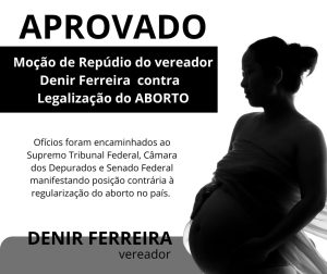 O vereador Denir também apresentou o requerimento número 84/2023, onde solicitou aprovação de Moção de Apoio ao Congresso Nacional, em face da tentativa de legalização do aborto por meio da ADPF 442, a fim de garantir as prerrogativas constitucionais e das competências do Poder Legislativo e para evitar um possível ativismo judicial por parte do Supremo Tribunal Federal.