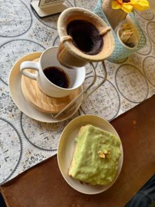 A Casa do Artesão também conta com a Suzana Cafeteria, um espaço charmoso localizado na varanda, que serve diversos produtos e tem um ambiente acolhedor. O cardápio inclui cafés, chás, sucos e delícias caseiras como pães de mel, brownies, cookies recheados e bolos do dia, além de lanches como misto quente, pão de queijo e o tradicional “Pão Quentinho” na chapa com requeijão. O horário de funcionamento é das 08h30 às 12h00 e das 14h00 às 18h00.