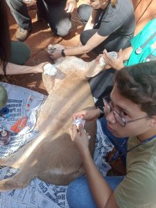 Mas há muito mais acontecendo nos bastidores do que apenas visitas públicas. A equipe do zoológico esteve ocupada com uma série completa de atividades. A equipe de servidores realizou exames de saúde de rotina em vários animais, incluindo uma onça-parda e um gato-do-mato, e conduziu um procedimento de emergência em um cervo.